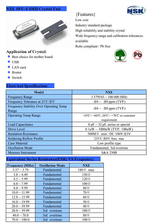 更多>>津綻晶振,NXE晶振,49SMD晶振